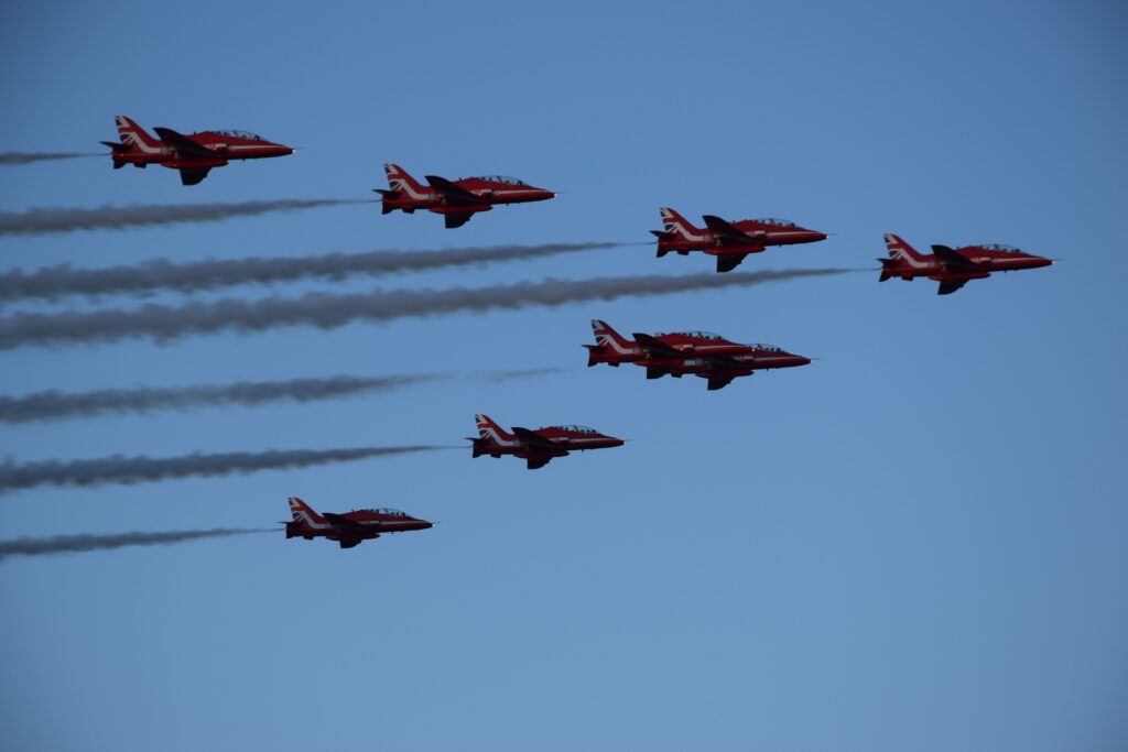 Akrobatska grupa Ujedinjene Kraljevine Velike Britanije i Sjeverne Irske Royal Air Force "Red Arrows" sletjela je s osam britanskih aviona BAE HAWK T-1, u četvrtak 27. listopada 2022. godine u vojarnu "Pukovnik Mirko Vukušić" u Zemuniku u posjet akrobatskoj grupi Hrvatskog ratnog zrakoplovstva "Krila Oluje".