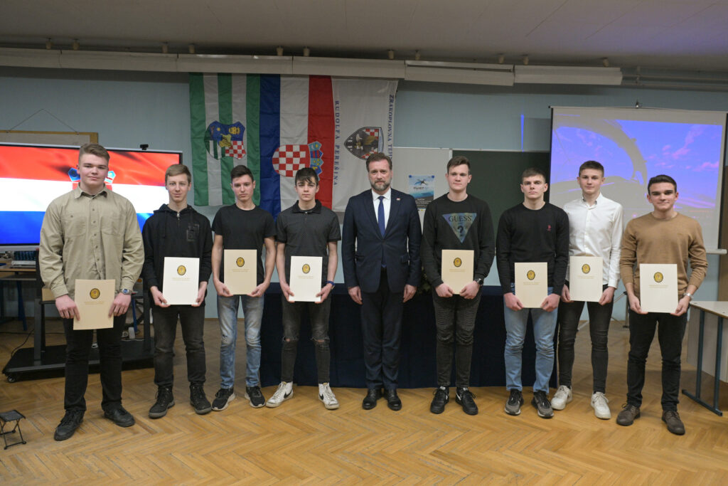 Ministar obrane Mario Banožić uručio je osmorici učenika Ugovore o stipendiranju koji se školuju za zvanje zrakoplovnog tehničara u Zrakoplovnoj tehničkoj školi “Rudolfa Perešina” u Velikoj Gorici u srijedu 01. veljače 2023. godine.