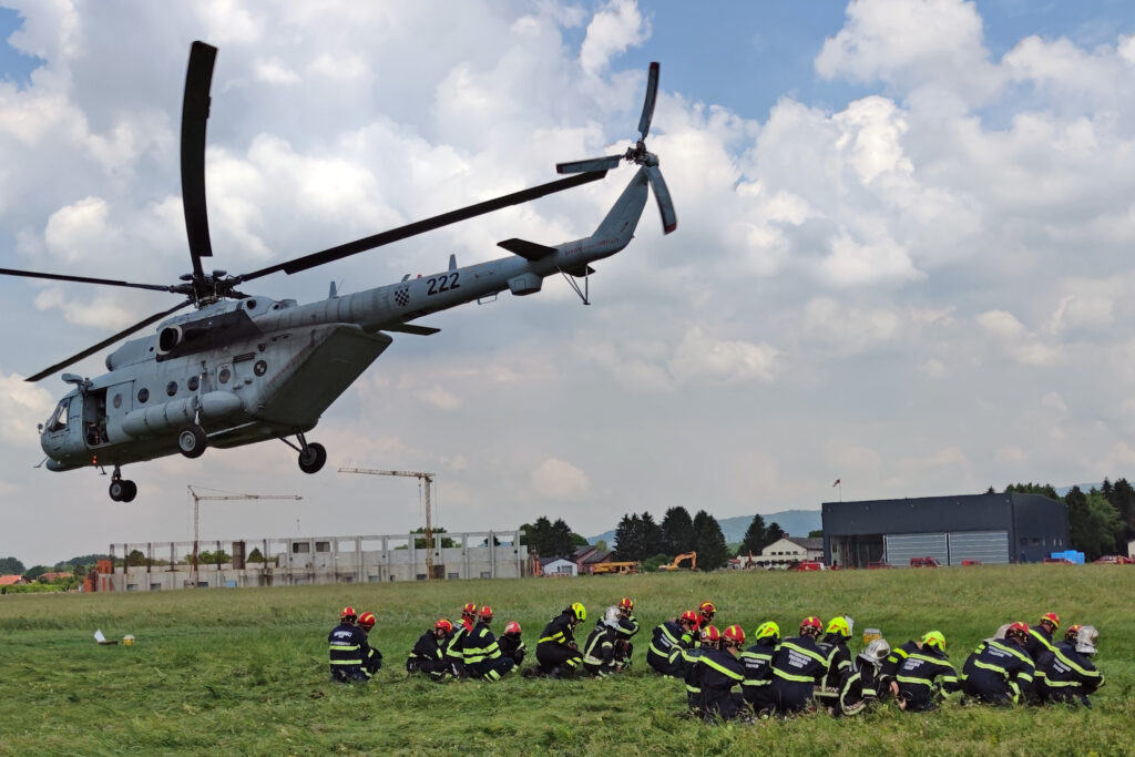 Posada s helikopterom Mi-171 Sh HRZ-a sudjeluje u vojarni “Lučko” na praktičnom osposobljavanju vatrogasaca za prijevoz i rad s helikopterom na vatrogasnim intervencijama