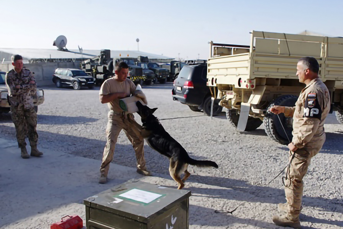 Pripadnici 9. hrvatskog kontingenta u misiji "Odlučna potpora" ("Resolut Support") su na traženje zapovjednika Train Advise Assist Command – North (TAAC-N) brigadnog generala Gerharda Klaffusa 26. listopada 2018. proveli vježbu s prikazom sposobnosti vojnopolicijskih radnih pasa Hrvatske vojske. Vježba je provedena u kampu Marmal u Mazar-e Sharifu, gdje naši vodiči pasa sa svojim radnim psima provode zadaće u sastavu Multinacionalne vojnopolicijske postrojbe.