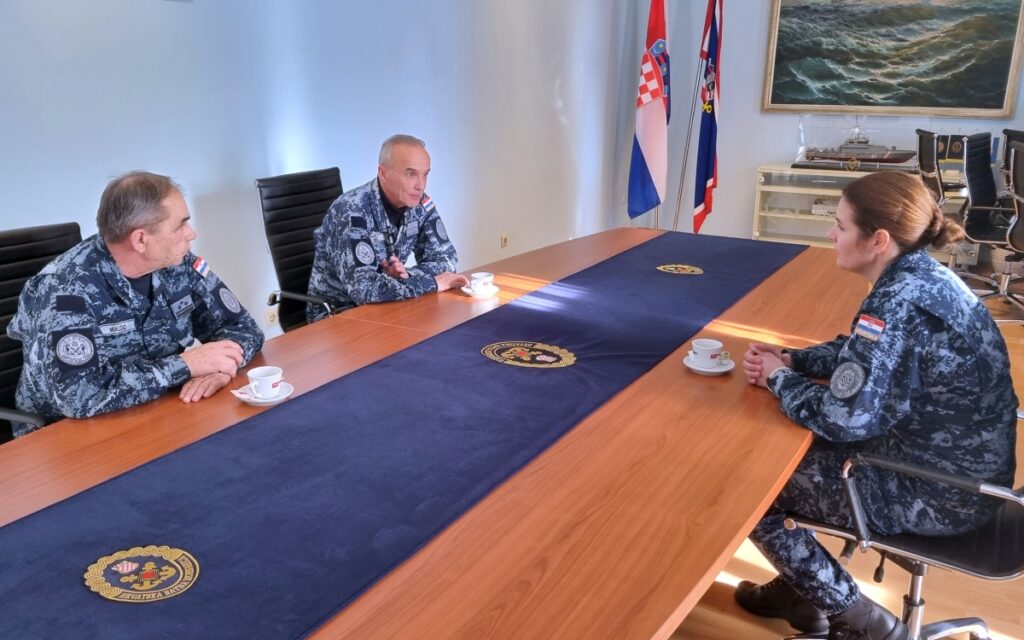 Poručnicu bojnog broda Antoniju Peroš pred odlazak u operaciju primio je zapovjednik Hrvatske ratne mornarice komodor Damir Dojkić, u pratnji zapovjednika Flote HRM-a kapetana bojnog broda Darka Malečića.
