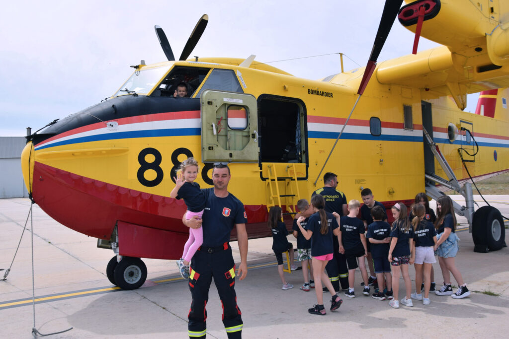 Predstavljeni su im avioni Pilatus PC-9 na kojima leti akrobatska grupa “Krila Oluje” i Zlin 242L na kojima se provodi selekcijsko letenje te helikopteri Bell-206B Jet Ranger i OH-58D Kiowa Warrior, međutim poseban interes djeca su iskazala prema protupožarnim avionima Canadair CL 415 i Air Tractor AT-802.