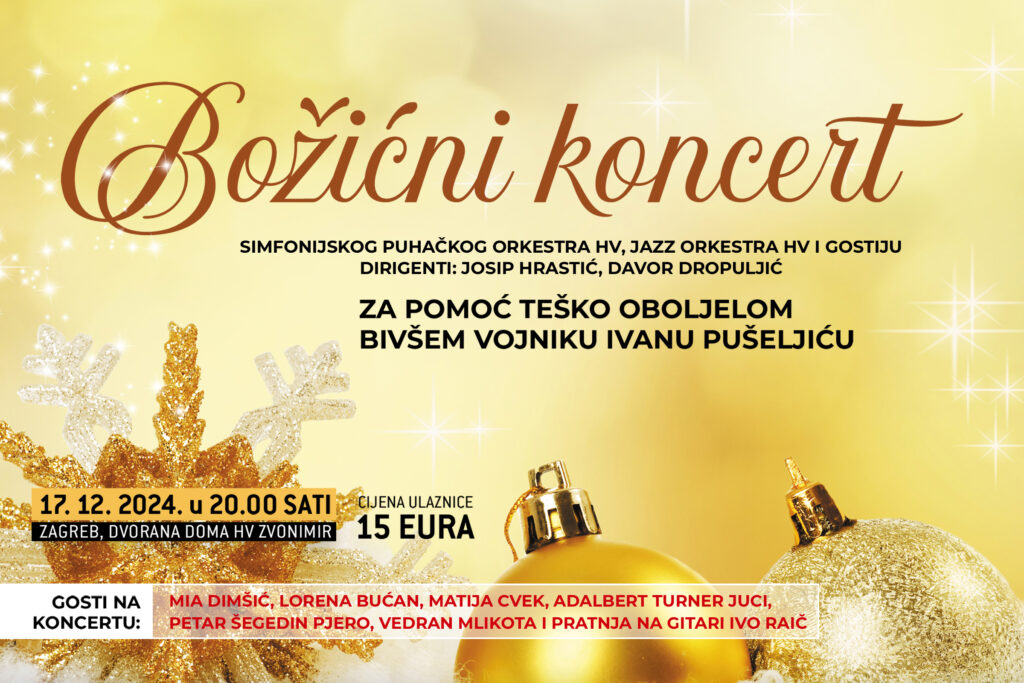 Božićni humanitarni koncert Simfonijskog puhačkog orkestra i Jazz orkestra Hrvatske vojske te gostiju za bivšeg vojnika Ivana Pušeljića održat će se danas 17. prosinca 2024.