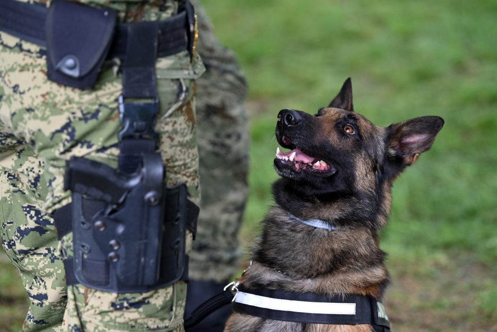 “Danas prikazujemo vježbu rada vodiča i službenih pasa Pukovnije vojne policije. Prikazat ćemo poticanje plijenskih nagona kod štenaca, detekciju narkotika i eksploziva, legitimiranje i sprovođenje osobe”, rekao nam je natporučnik Mladen Vranić, zapovjednik Obučnog centra vodiča i službenih pasa “satnik Krešimir Ivošević”, koji obučava vodiče i službene pse za zaštitne, čuvarske, tragačke i detekcijske namjene.
