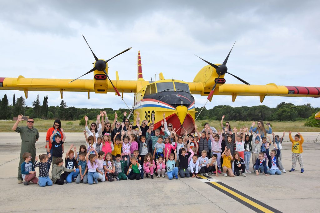 Djeca su tijekom posjeta s oduševljenjem razgledavala avione Pilatus PC-9 na kojima leti akrobatska grupa “Krila Oluje”, Zlin 242L na kojima se provodi selekcijsko letenje te helikoptere Bell-206B Jet Ranger i OH-58D Kiowa Warrior, a posebno su ih fascinirali protupožarni avioni Canadair CL-415 i Air Tractor AT-802.