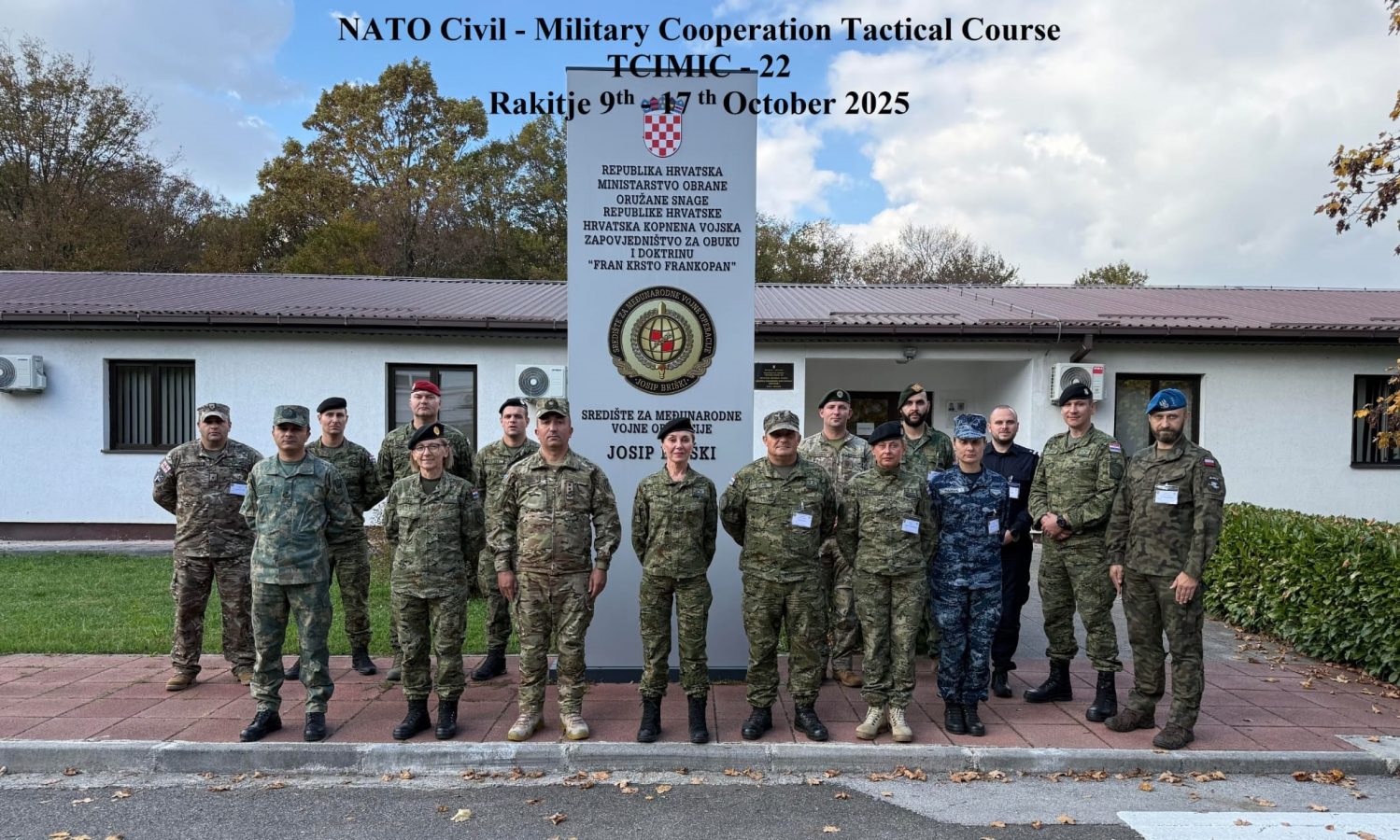 U Središtu za međunarodne vojne operacije “Josip Briški”, u vojarni “Vitez Damir Martić” u Rakitju, od 9. do 17. listopada 2025., proveden je 22. međunarodni tečaj civilno-vojne suradnje (Civil Military Co operation – CIMIC) na taktičkoj razini.