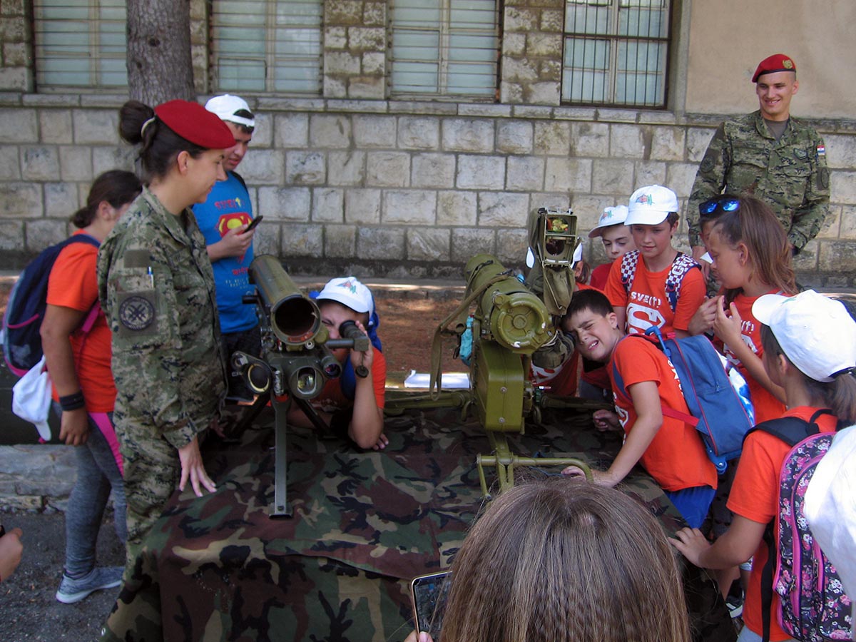 Učenici trećih i petih razreda u sklopu Ljetnog oratorija Ivana Pavla II. u srijedu, 3. srpnja 2019. posjetili su vojarnu 4. gardijske brigade Pauci u Kninu.