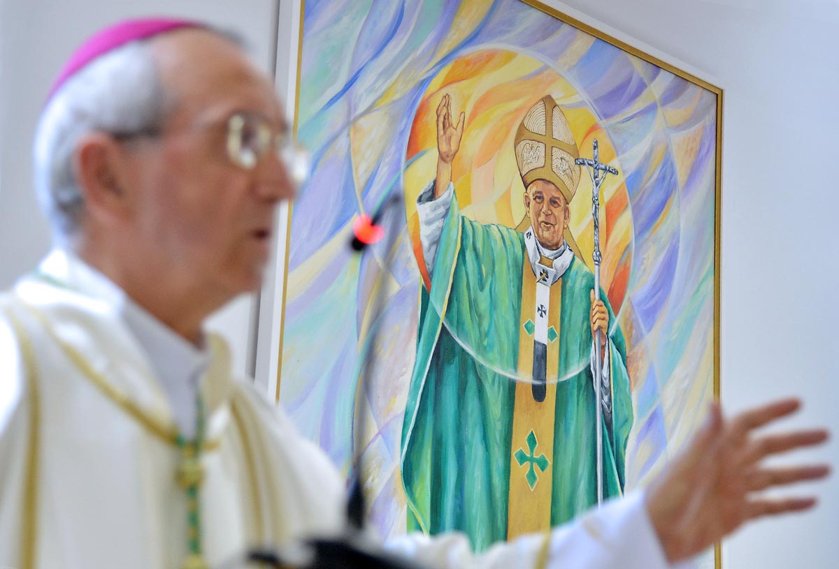 U svojoj propovijedi mons. Želimir Puljić izrazio je veselje što ima priliku slaviti spomendan svetog Ivana Pavla II. u kapelici posvećenoj upravo njemu. „Ne bojte se, otvorite vrata Kristu! - riječi su Ivana Pavla II. upravo na dan kada je izabran za glavnog pastira Katoličke crkve. On je već tada shvatio kako je njegova misija donijeti Krista svima pa možemo reći kako je naš Dobri Papa bio pravi Božji general i vođa Kristove vojske, general jednog i jedinog Kralja, zaista je ozbiljno shvatio svoju zadaću nasljednika svetog Petra - buditi svijest o Božjoj prisutnosti među narodima“, rekao je mons. Puljić te dodao: "Čvrst i hrabri papa zalagao se za ujedinjenu Europu te pozivao u ovome vremenu za povratak kršćanskim vrijednostima. Njegov je mač bio uperen protiv idola našeg vremena, protiv svijeta koji bježi od Boga, protiv svih zavodnika ljudi. Otvorite vrata Kristu, otvorite mu državne granice, otvorite mu vrata ekonomskih i političkih sustava, neka se nitko ne plaši Krista, temeljna je poruka Svetog Ivana Pavla II."