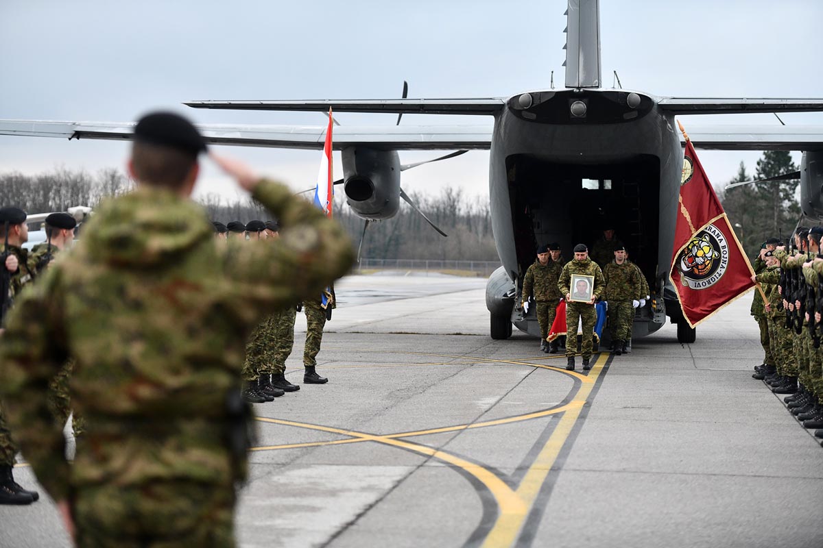 Uz vojne počasti u zagrebačkoj vojnoj bazi Pleso u srijedu, 13. prosinca 2017. godine, upriličen je doček tijela preminulog pripadnika 1. hrvatskog kontingenta koje je transportnim zrakoplovom iz Republike Litve prevezeno u Republiku Hrvatsku.