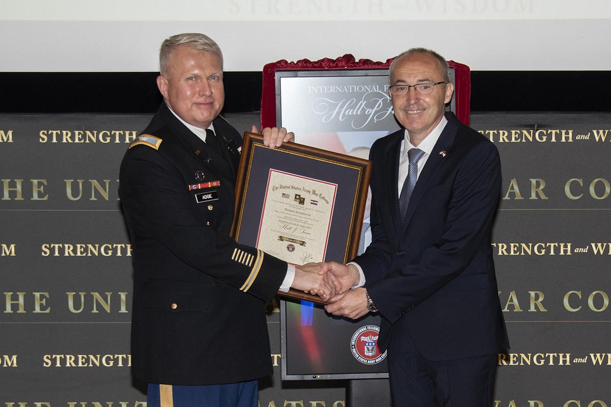 Potpredsjednik Vlade i ministar obrane Damir Krstičević u utorak, 22. svibnja 2018. svečano je primljen u Kuću slavnih međunarodnih polaznika Ratne škole kopnene vojske SAD-a (International Fellows Hall of Fame US Army War College).