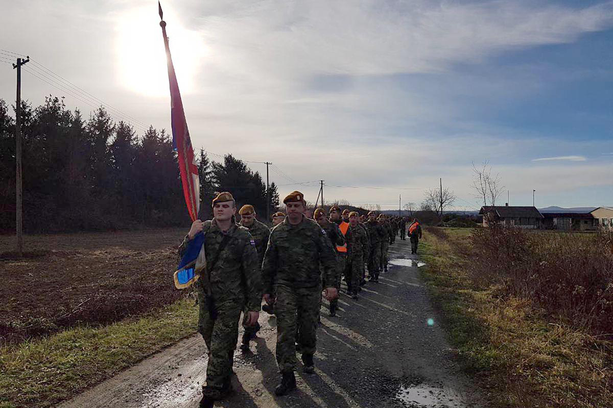 Pripadnici 2. mehanizirane bojne Pume Gardijske oklopno-mehanizirane brigade u srijedu, 12. prosinca 2018., krenuli su iz vojarne 132. brigade Hrvatske vojske u Našicama na hodnju do vojarne 7. gardijske brigade Pume u Varaždinu