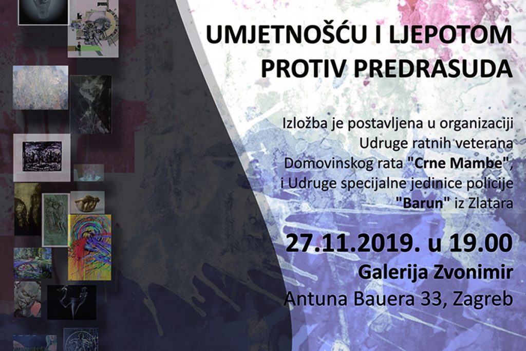 Otvorenje izložbe “Umjetnošću i ljepotom protiv predrasuda” održat će se u galeriji Ministarstva obrane “Zvonimir” u Zagrebu, Bauerova 33, u srijedu, 27. studenog 2019., s početkom u 19 sati.
