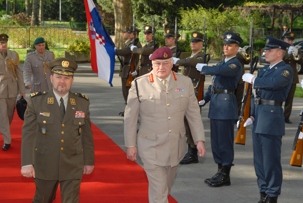 Zamjenici načelnika Glavnog stožera OSRH general pukovnik Slavko Barić i kontraadmiral Zdenko Simičić primili su danas, 22. travnja, u službeni posjet zamjenika načelnika Obrambenog stožera Ujedinjenog kraljevstva Velike Britanije i Sjeverne Irske, generala pukovnika Petera Walla.