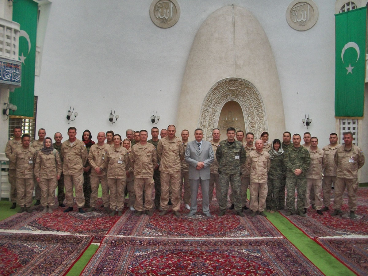 U sklopu pripreme za odlazak u mirovnu misiju ISAF u Afganistanu pripadnici sastavnice stožernog i potpornog osoblja 20. hrvatskog kontingenta posjetili su u srijedu, 30. svibnja 2012. Zagrebačku džamiju.