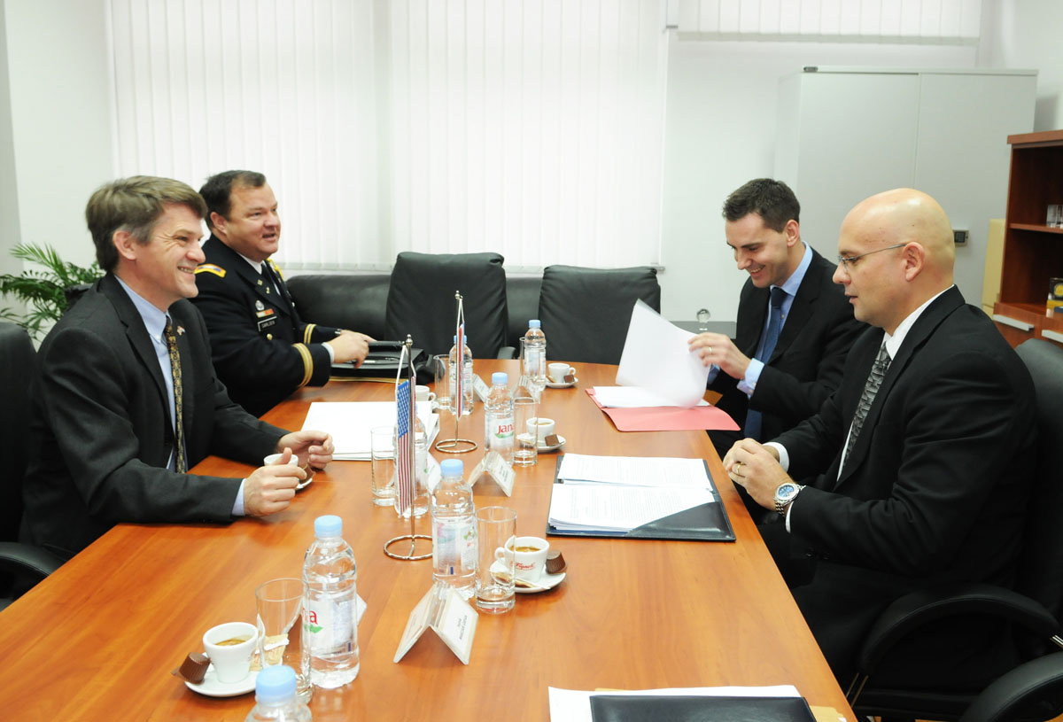Državni tajnik Ministarstva obrane, Pjer Šimunović sa suradnicima primio je u ponedjeljak, 22. studenoga 2010. u službeni posjet izaslanstvo SAD-a, predvođeno zamjenikom pomoćnika tajnika za europske i euroazijske poslove u Ministarstvu vanjskih poslova SAD-a, Thomasom M. Countrymanaom.