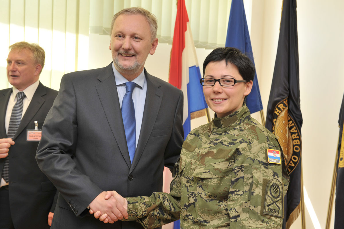 Ponosni smo da si pripadnica velike obitelji Oružanih snaga RH te ćeš svoju profesionalnost, specifično znanje i vještinu prenositi novim naraštajima Oružanih snaga RH", stoji u čestitci ministra obrane Davora Božinovića.