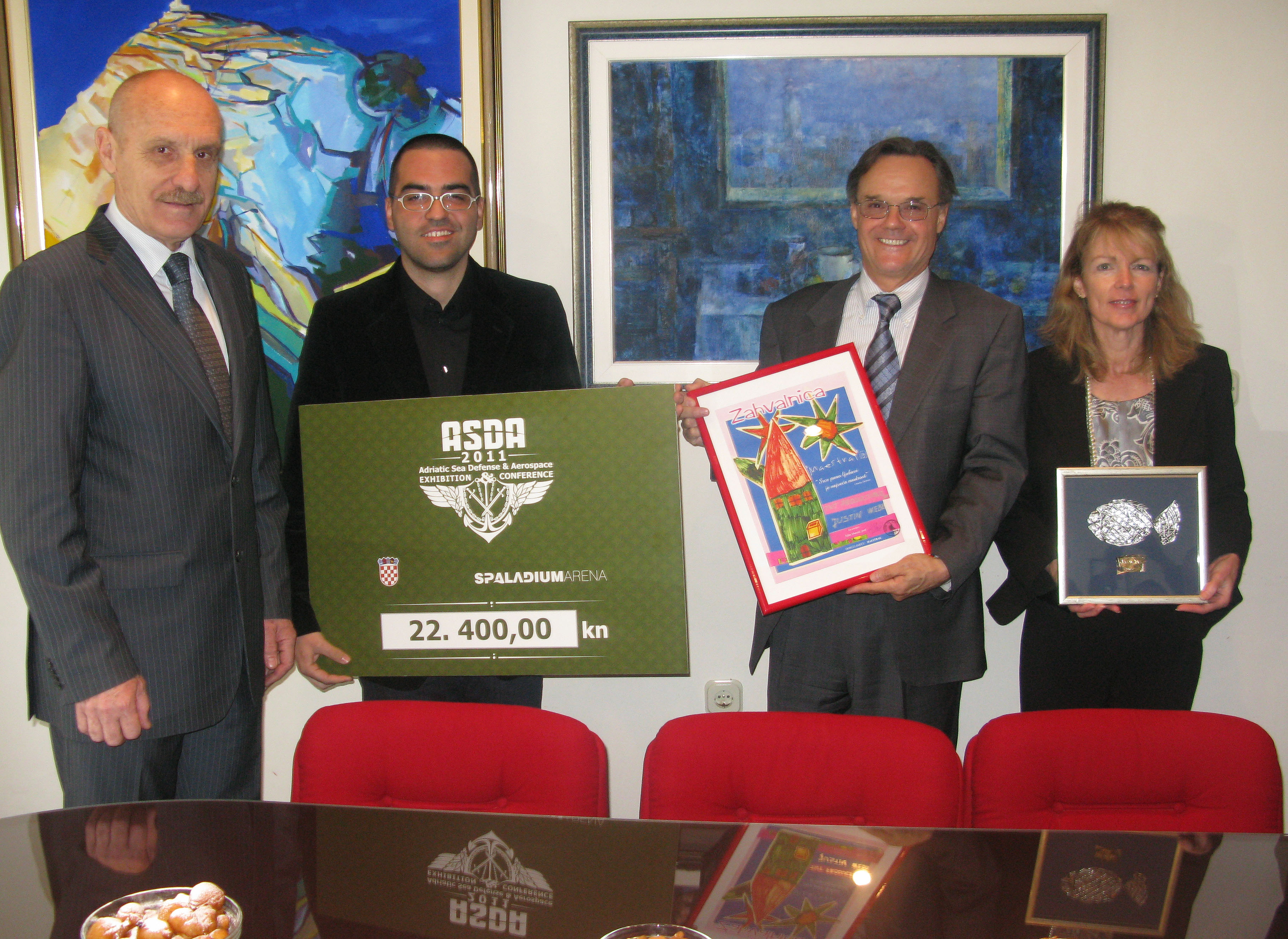 Državni tajnik MORH-a Mate Raboteg i Direktor i vlasnik američke tvrtke TNT Productions Inc Justine Webb, organizator ASDA-e 2011 uručili su danas, 1. travnja 2011. novčanu donaciju Dječjem domu Maestral u Splitu, u iznosu od dvadesetak tisuća kuna.