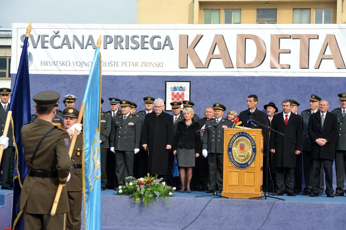 "Čestitam vam na izazovu koji ste prihvatili i što ste prepoznati kao oni koji te izazove mogu svladati", kazao je kadetima predsjednik Republike i Vrhovni zapovjednik OSRH-a Ivo Josipović, te dodao da nikad ne zaborave da je Hrvatska ponosna na njih i da oni budu ponosni na Hrvatsku. Istaknuo je i kako je obrazovanje i usavršavanje nužno za sve struka pa tako i za vojni poziv.