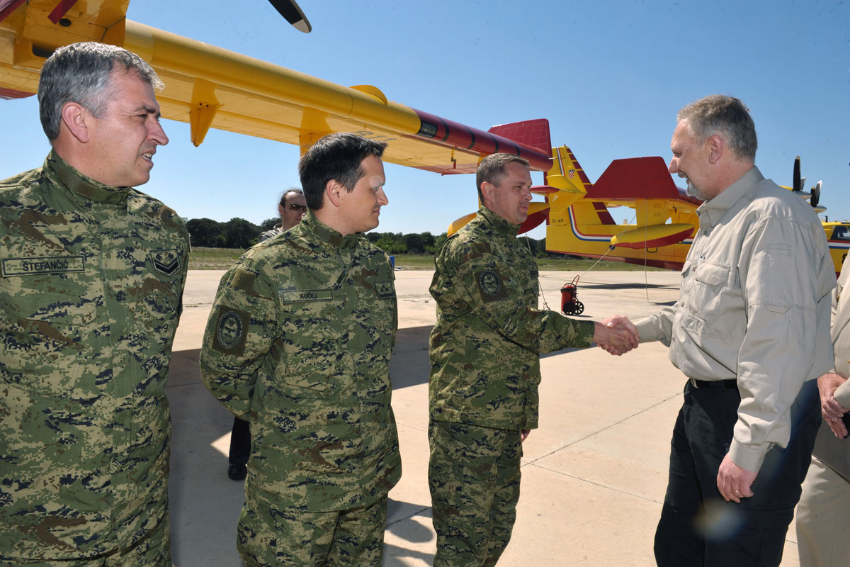 Nakon prezentacije koju je održao general bojnik Mate Obradović, zapovjednik PP NOS-a OS RH, te razgledavanja opreme i letjelica u Zemuniku, ministar Božinović je predstavnicima medija izjavio kako su OS RH u potpunosti spremne za nadolazeću protupožarnu sezonu. „Broj požara je ove godine znatno veći nego prijašnjih godina; no i u tim okolnostima ljudstvo, avioni i helikopteri te tehnička sredstva OS RH spremna su kako za interveniranje, tako i za preventivna djelovanja“, rekao je Božinović.
