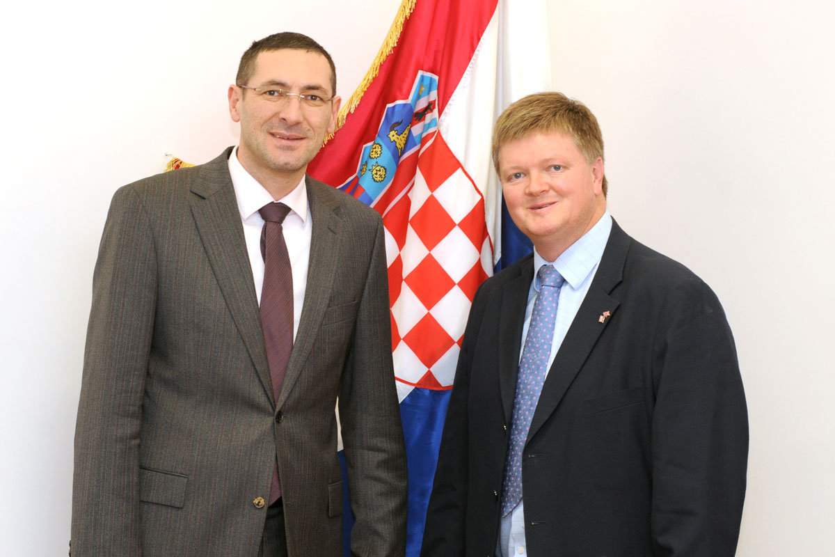 Ministar obrane Ante Kotromanović primio je danas, u četvrtak 19. siječnja 2012. u nastupni posjet Christopera Hodgea, zamjenika šefa misije i prvog tajnika Ujedinjene Kraljevine Velike Britanije i Sjeverne Irske te pukovnika Philipa Osmenta - britanskog vojnog izaslanika u Republici Hrvatskoj.