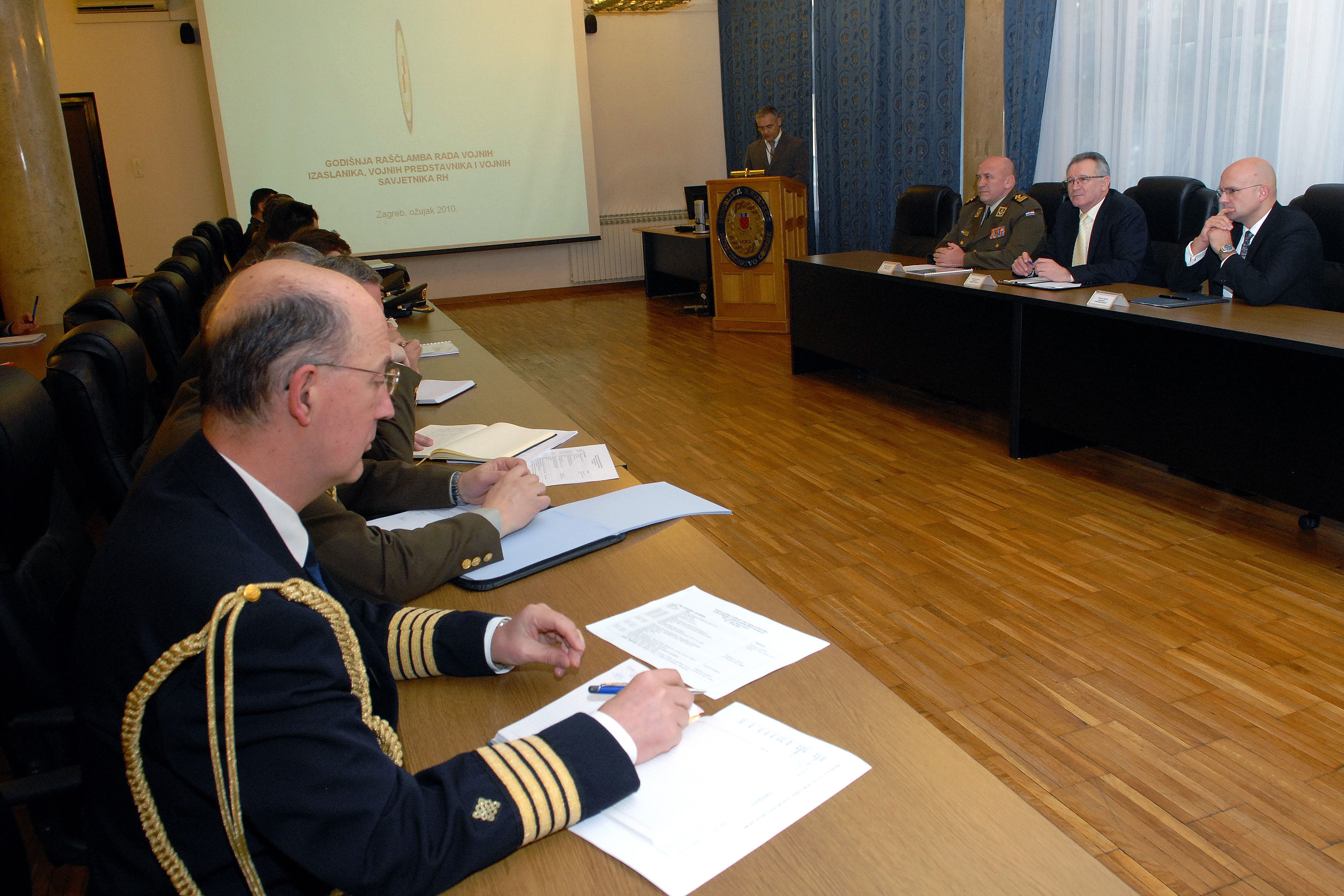 U svom obraćanju ministar obrane RH Branko Vukelić zahvalio se vojnim predstavnicima, izaslanicima i savjetnicima na njihovu doprinosu i jačanju suradnje RH sa zemljama u kojima se nalaze. Podsjetio je na članstvo u NATO-u i težišne aktivnosti u Savezu koje su usmjerene na dosezanje pune integracije, cjelokupne kompatibilnosti i interoperabilnosti."Članstvo u NATO-u, sustavu kolektivne obrane, izdiglo je našu nacionalnu sigurnost na jednu posve novu razinu u kojoj smo se potvrdili kao vjerodostojan saveznik", rekao je ministar Vukelić. Također, osvrnuo se i na sudjelovanje pripadnika OS RH u međunarodnim mirovnim operacijama i misijama, popunu pozicija u strukturama NATO saveza, sudjelovanju u mehanizmima obrambene suradnje, pripreme za punu integraciju RH u Europskoj uniji, izradu niza novih strateških dokumenata, te ostvarivanje strateških ciljeva.