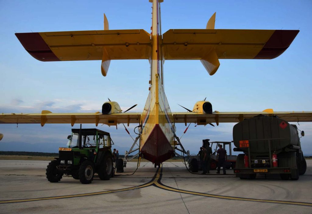 Zračne snage s ukupno sedam aviona iz sastava PP NOS OSRH neprekidno su više od šest sati gasile požar u zaleđu Šibenika, a na terenu ostaju kopnene snage Hrvatske vojske zajedno s pripadnicima vatrogasnih postrojbi