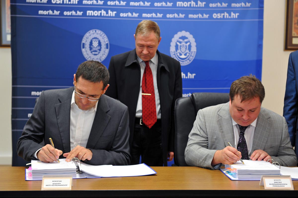 Ministar obrane Ante Kotromanović i direktor ukrajinske Državna kompanije za izvoz i uvoz robe i usluga vojne i posebne namjene "UKRSPECEXPORT" Dmitry Aleksandrovich Peregudov potpisali su danas, 8. srpnja 2013. godine Ugovor o remontu i kupnji zrakoplova MiG 21.
