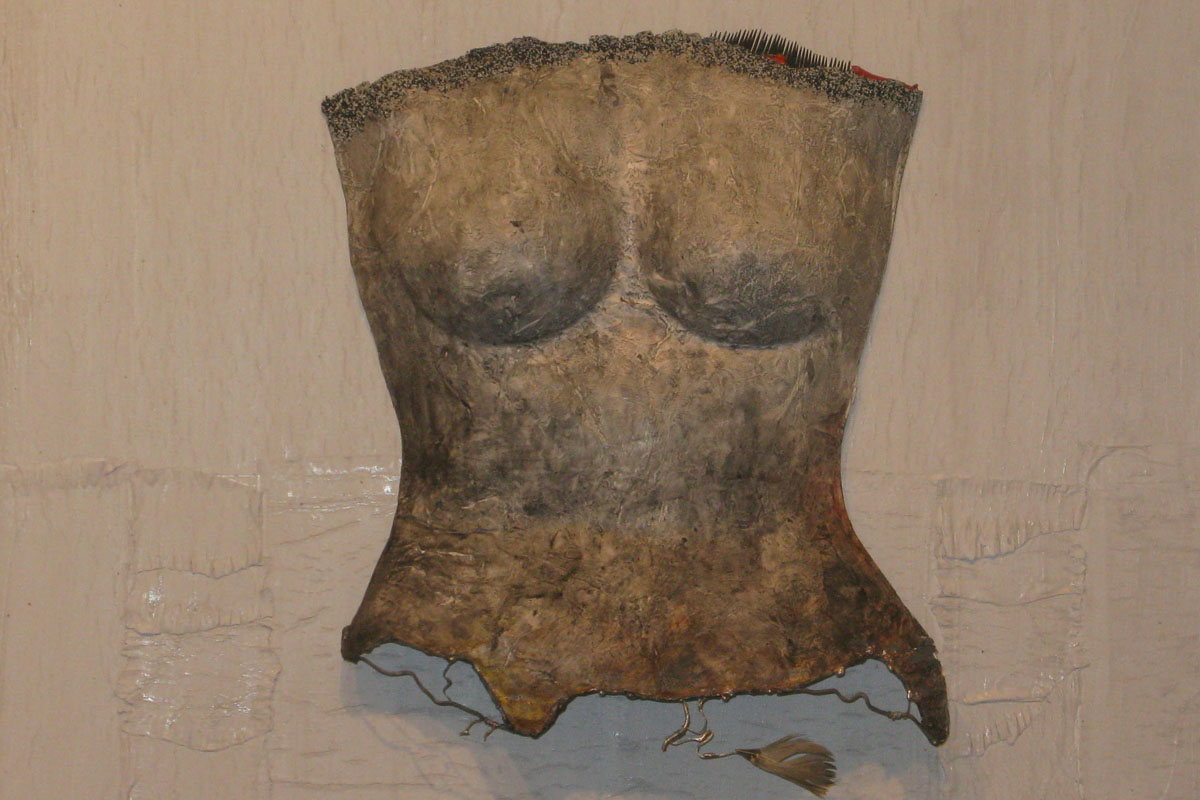 Umjetnica temeljnom materijalu za torza-mljevenom i kaširanom papiru dodaje cement,zidnu boju, zemlju, narezane niti konca, čipku...Tako svaki put dobiva drugačiju povrsinu torza i šalje drugačiju likovnu poruku.