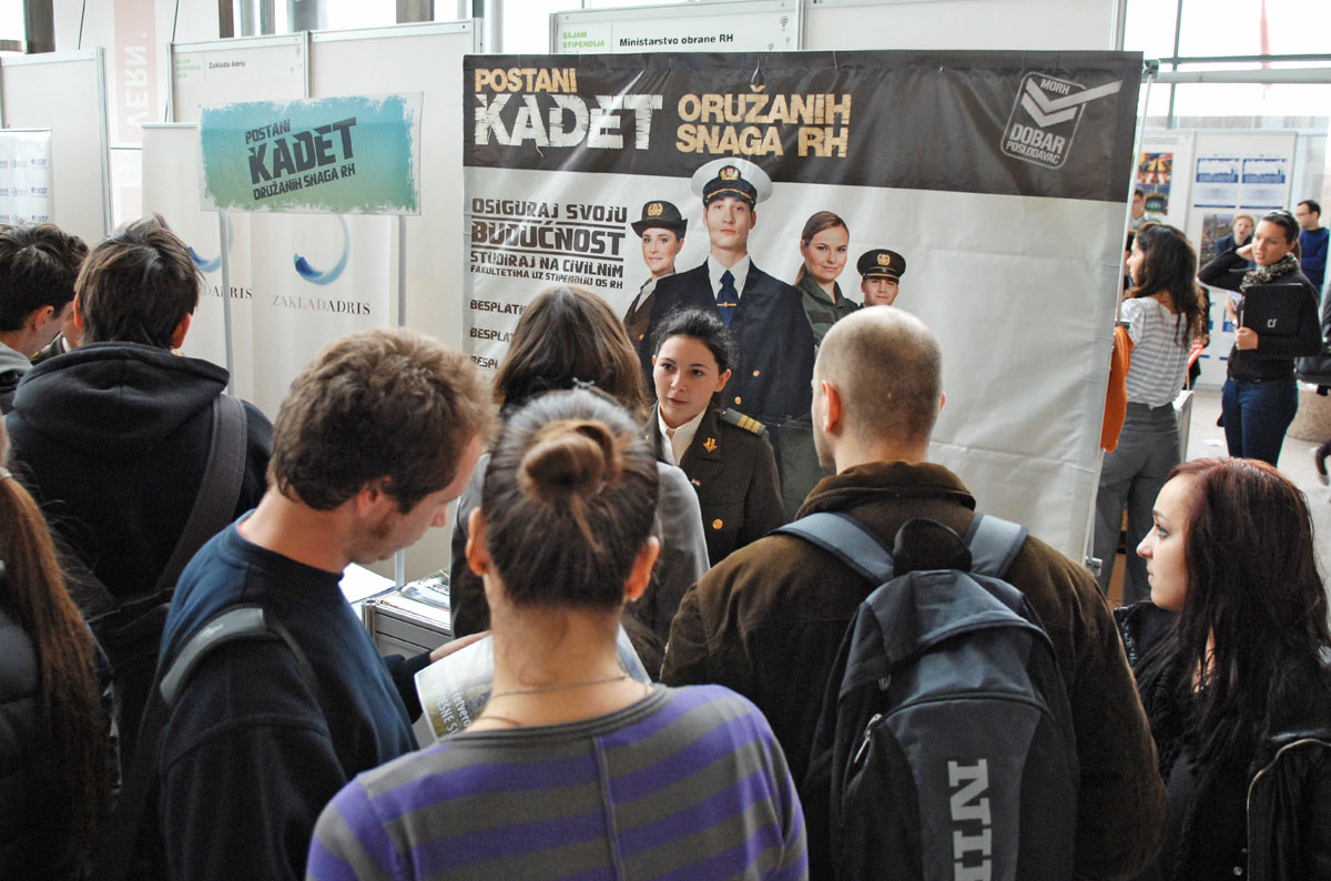 Djelatnici Službe za odnose s javnošću i informiranje MORH-a, Središnjice za upravljanje osobljem i stipendisti OS RH dijelili su letke i brošure o civilno-vojnom programu stipendiranja "Kadet" i stipendiranju studenata viših godina prediplomskih i diplomskih studija, te su informirali potencijalne stipendiste s mogućnostima stipendiranja, odgovarali na upite posjetitelja s kojima su podijelili i svoja iskustva. Također, djelatnici Središnjice za upravljanjem osobljem održli su prezentaciju o projektima privlačenja osoblja u MORH i OS RH.