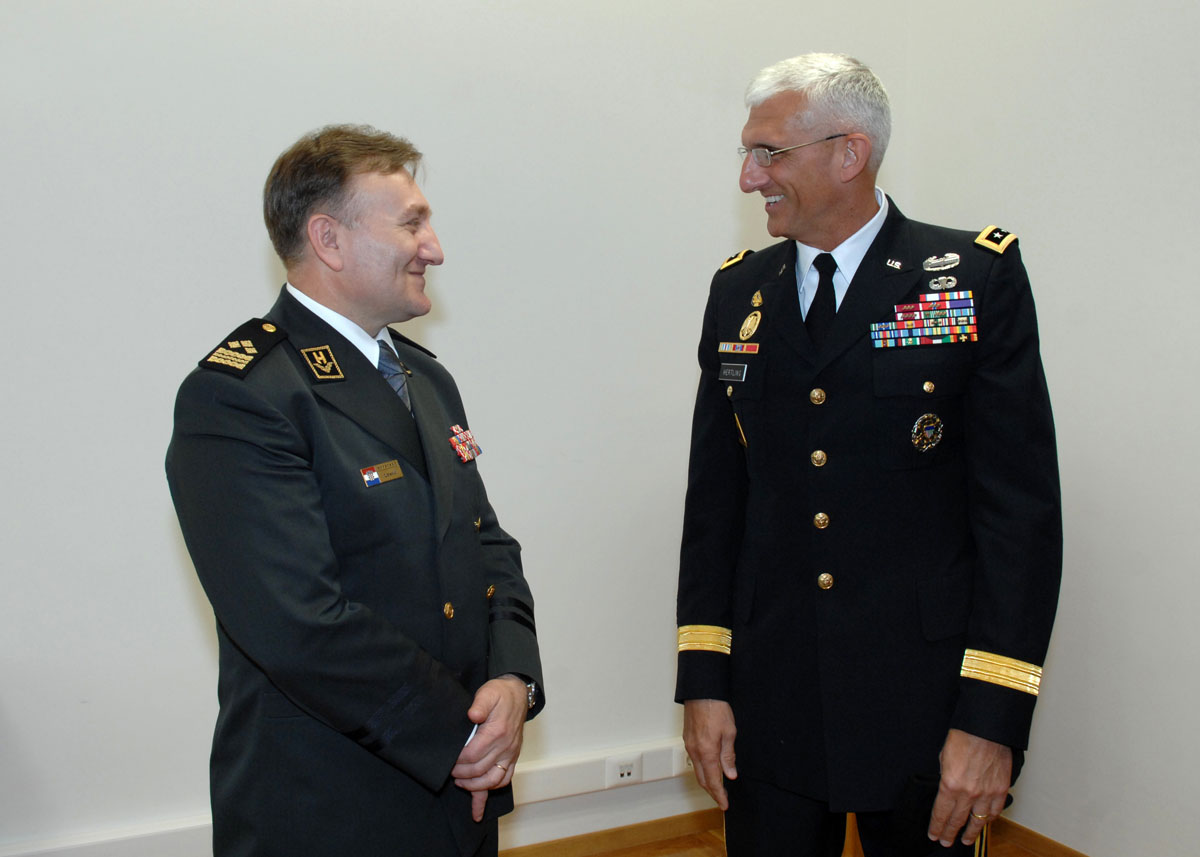 Načelnik Glavnog stožera OS RH general pukovnik Drago Lovrić i državni tajnik MORH-a Pjer Šimunović sa suradnicima, primili su danas, 10. lipnja 2011. godine u službeni posjet američko izaslanstvo predvođeno zapovjednikom Američkih kopnenih snaga u Europi, general pukovnikom Markom Hertling-om.