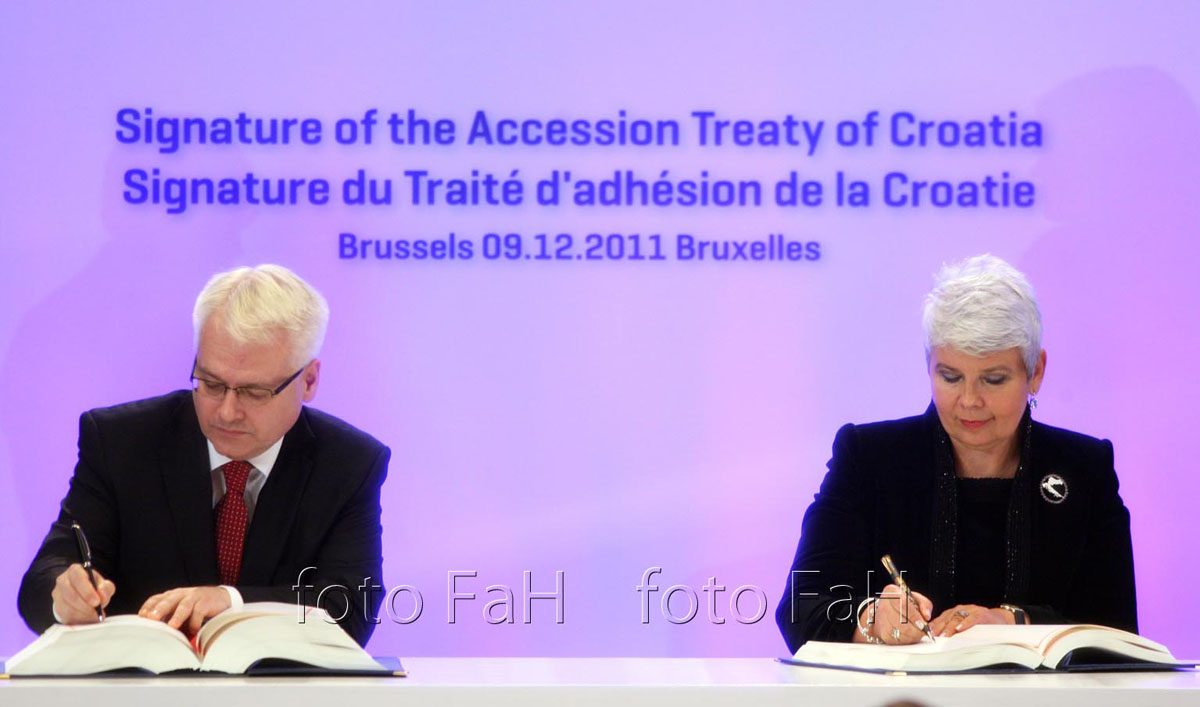 Potpisivanjem Ugovora o pristupanju Europskoj uniji kojega su u ime Republike Hrvatske potpisali predsjednik Ivo Josipović i premijerka Jadranka Kosor te čelnici 27 zemalja EU, danas, u petak 9. prosinca 2011. Hrvatska je promijenila status iz zemlje kandidata za članstvo za EU u pristupajuću zemlju. Hrvatska će punopravnom članicom postati za godinu i pol dana nakon ratifikacije ugovora u Hrvatskoj i zemljama članicama. Ugovorom je predviđeno da to bude 1. srpnja 2013. godine.