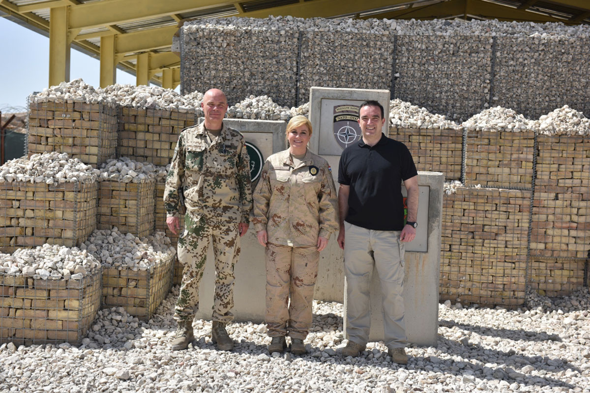 U Mazar-e-Sharifu predsjednicu i ministra dočekali su zapovjednik Hrvatske kopnene vojske general-pukovnik Mate Ostović, zapovjednik Zapovjedno operativnog središta brigadir Krešimir Tuškan i zapovjednik 4. HRV CON-a brigadir Mato Matanović.