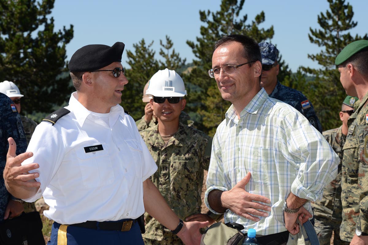 Pomoćnik ministra obrane za obrambenu suradnju dr. sc. Dragan Lozančić i načelnik Uprave za operativne poslove i obuku GS OSRH-a, komodor Tihomir Erceg, zajedno sa čelnikom američkog Ureda za obrambenu suradnju pukovnikom Troy D. Eggumom i voditeljicom programa humanitarne pomoći Dianom Maršić te načelnikom Općine Udbina Ivanom Pešutom, obišli su danas, u srijedu, 11. srpnja radove na izgradnji glavnog vodovoda i rekonstrukciji dječjeg vrtića u Udbini, a koje provode američki i hrvatski vojnici u sklopu aktivnosti vezanih uz organizaciju međunarodne vježbe Jackal Stone 2012, koja će se u rujnu održavati u Republici Hrvatskoj.