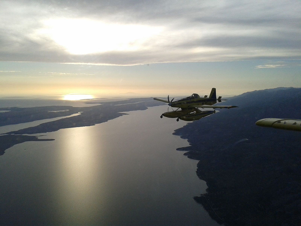 Po završetku gašenja požara u blizini mosta u Šibeniku u Šibensko-kninskoj županiji dva aviona Canadair CL-415 preusmjerena su na požarište Mali Lukoran na otoku Ugljanu u Zadarskoj županiji, gdje su uz pomoć još dva aviona Airtractor AT-802 gasili požar.