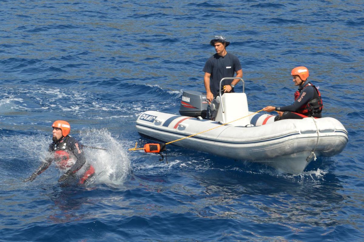 Uz posadu broda Obalne straže RH SB-73 "Faust Vrančić" na vježbi je sudjelovalo i šest pripadnika Hrvatskog crvenog križa - Službe spašavanja života na vodi.