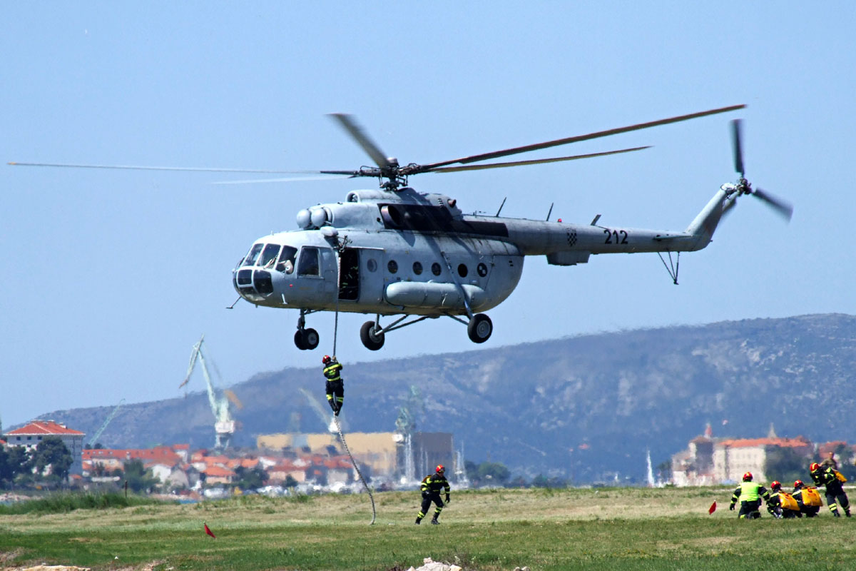 Helikopter Mi-8 MTV1 HRZ i PZO-a angažiran u Protupožarnim namjenski organiziranim snagama OS RH (PP NOS OS RH) sudjelovao je danas 24. svibnja 2012. godine u obučnim aktivnostima Državne intervencijske postrojbe Split (DIP Split) na Grobniku i u Medulinu.