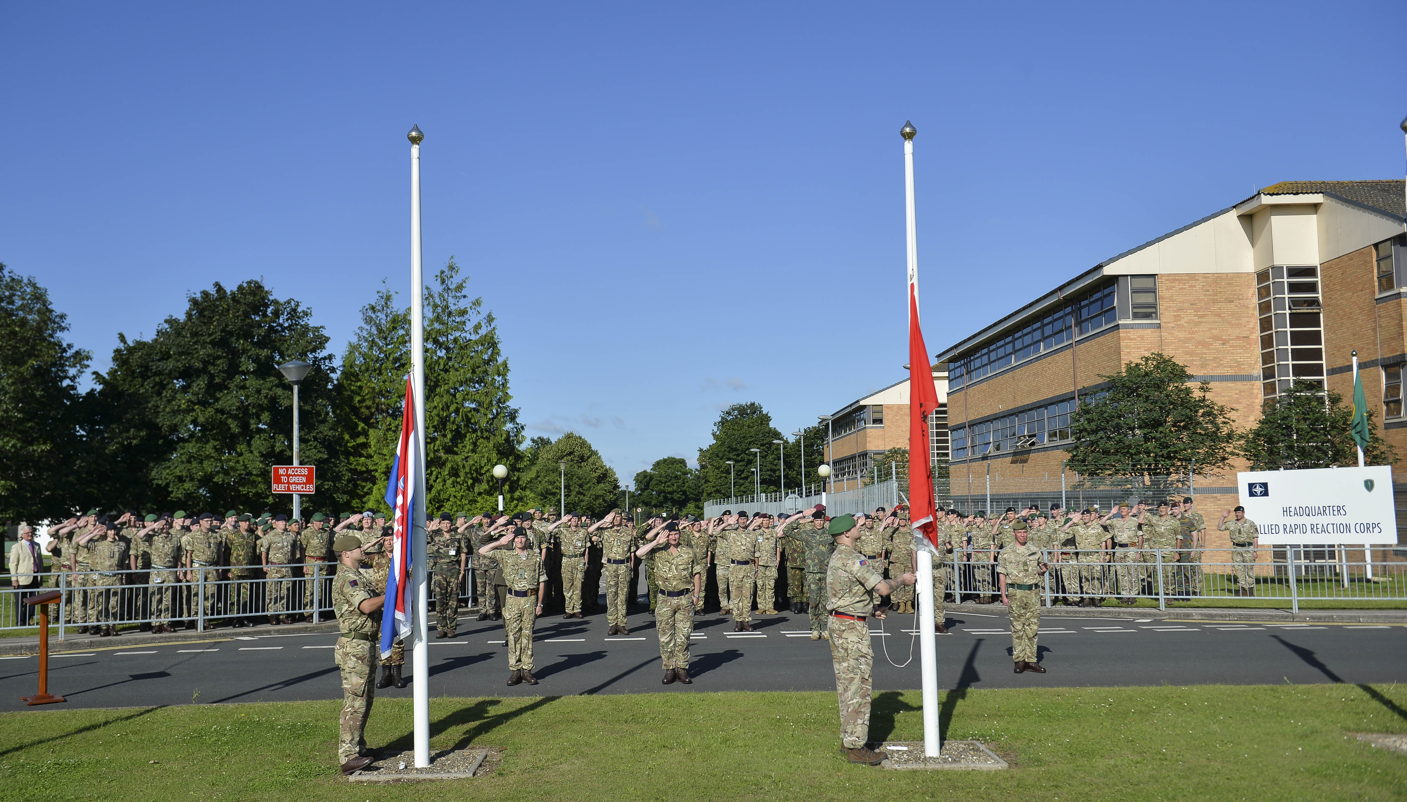 U vojarni Stožera Savezničkog korpusa za brzo djelovanje (Headquarter Allied Rapid Reaction Corps –HQ ARRC) u Innsworthu, Ujedinjena Kraljevina, u četvrtak, 14. srpnja 2016. održana je svečanost podizanja zastave Republike Hrvatske u znak obilježavanja punopravnog članstva u Stožeru.