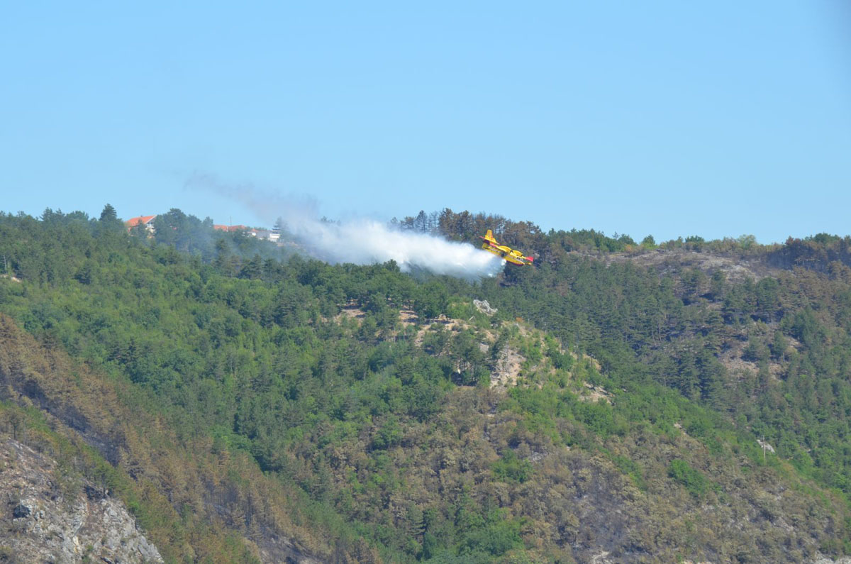 Na požarištu Raškovići-Zelembabe kod Knina požar gase dva Canadaira CL-415. Isto tako, dva Canadaira angažirana su na požarištima Svilaja-Hrvace-Maljkovo.