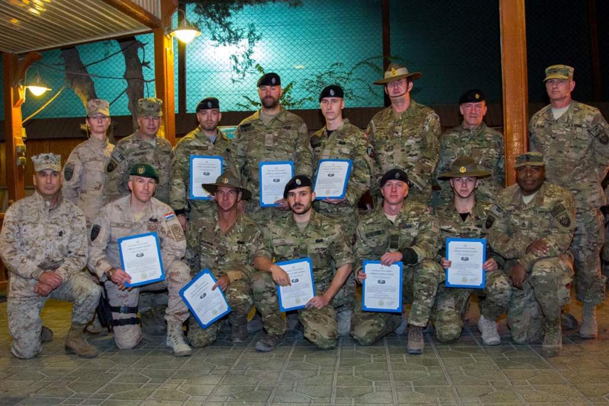Značke Combat Action Badge pripadnicima ISAF-a uručio je zapovjednik koalicijskog združenog zapovjedništva za sigurnosnu tranziciju u Afganistanu, Combined Security Transition Command – Afghanistan (CSTC-A), general bojnik Todd T. Semonite.