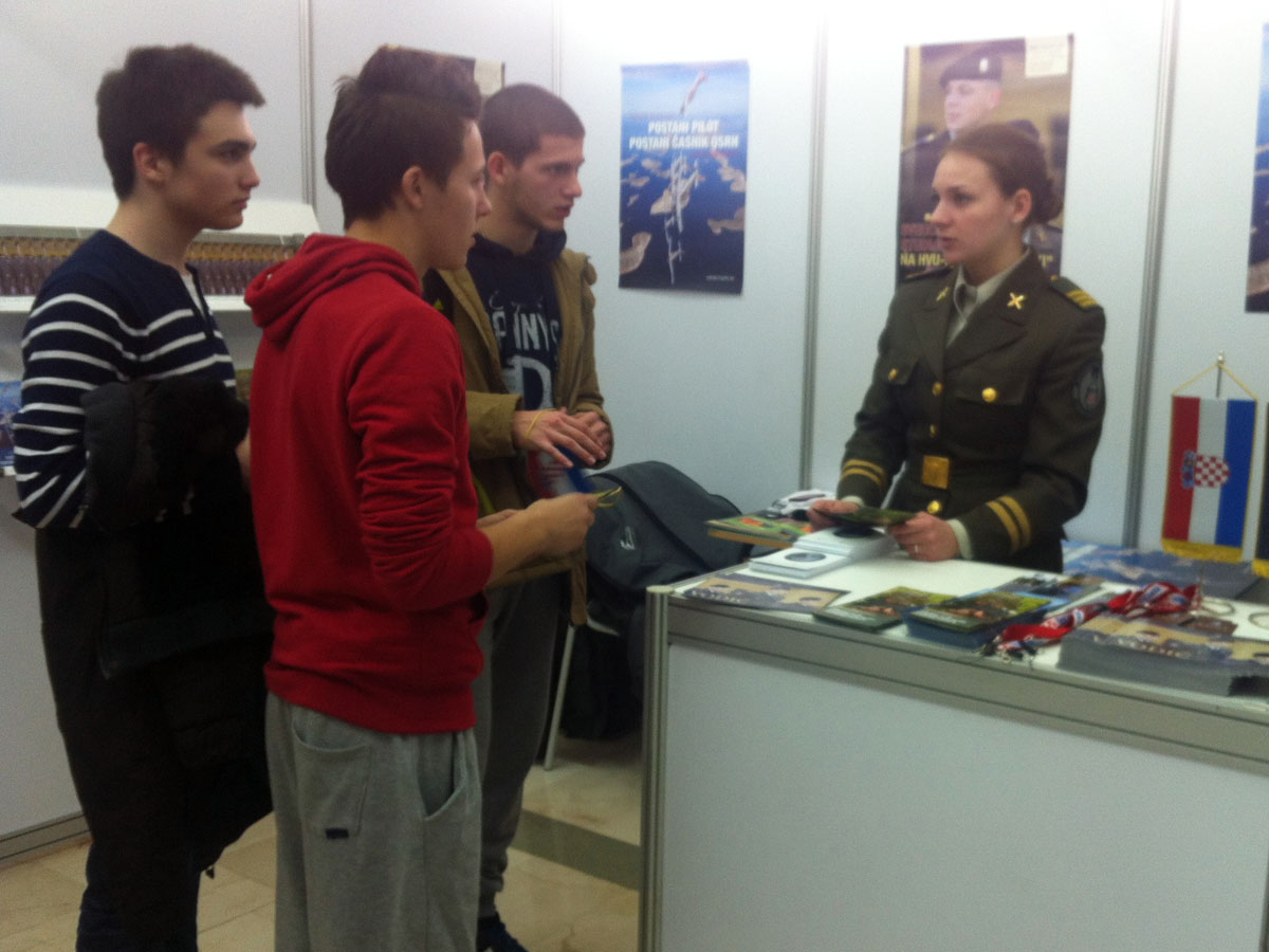 Na izložbenom štandu Ministarstva obrane maturanti i drugi zainteresirani mogu se informirati o Sveučilišnim studijskim programima Hrvatskog vojnog učilišta - Vojno inženjerstvo i Vojno vođenje i upravljanje, programu civilno-vojnog školovanja „Kadet“ i dragovoljnom vojnom osposobljavanju, a svoja iskustva rada u Oružanim snagama RH zainteresiranima će prenijeti kadeti i piloti Oružanih snaga RH.