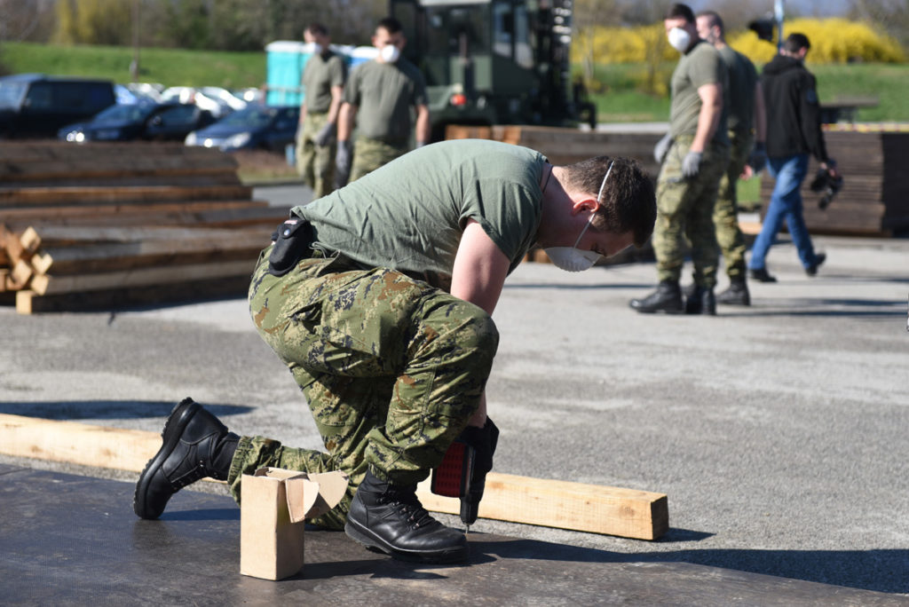 Pripadnici Hrvatske vojske započeli su u četvrtak, 19. ožujka 2020. godine s podizanjem šatora i ekspedicijskog kampa ispred Kliničke bolnice Dubrava u Zagrebu, kapaciteta 270 kreveta za prihvat oboljelih pacijenata.