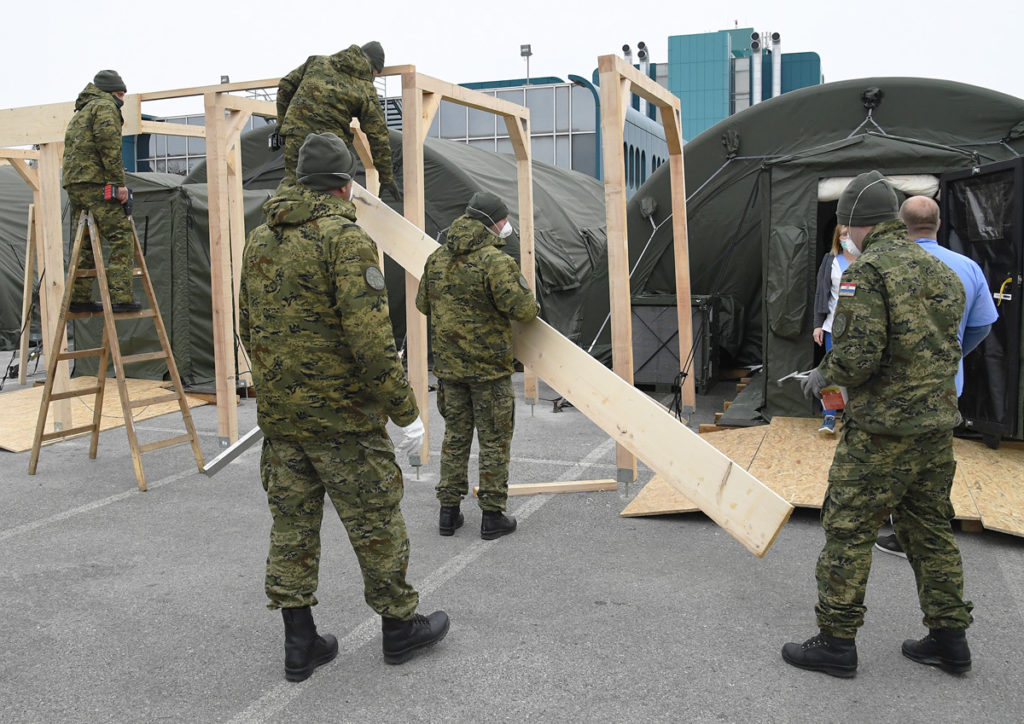 Pripadnici Hrvatske vojske započeli su u utorak, 24. ožujka 2020. izgradnju natkrivenog prostora, tzv. komunikacijskog tunela, unutar samoodrživog ekspedicijskog kampa ispred Kliničke bolnice Dubrava koji će izravno povezati bolnicu sa šatorskim naseljem.