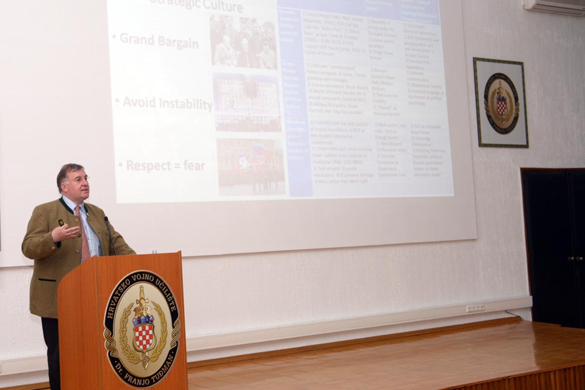 Na Hrvatskom vojnom učilištu "Dr Franjo Tuđman" u četvrtak, 19. travnja 2018. profesor međunarodne sigurnosti na Fakultetu George Marshall Centru prof. dr. Graeme P. Herd, održao je predavanje na temu "Putinov 4. mandat: izazovi, prepreke i dileme"