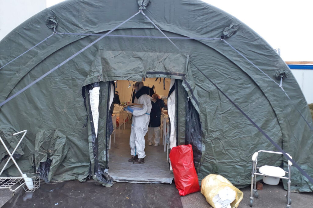 Hrvatska vojska dodatne šatore postavljala je tijekom noći kako bi se isti što prije stavili u funkciju, a u njima su već zbrinuti prvi pacijenti. Riječ je, naime, o šatorima koje je Hrvatska vojska početkom studenog ove godine postavila ispred Opće bolnice Varaždin te tako pružila potporu u zdravstvenom zbrinjavanju oboljelih od koronavirusa.