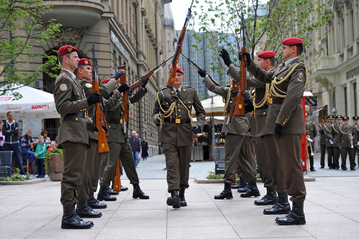 Obilježavanje 22. godišnjice ustrojavanja Oružanih snaga RH nastavljeno je danas, 2. lipnja, prigodnim glazbenim program Orkestra OS na Zrinjevcu i prikazom počasnih i vježbovnih radnji Počasno zaštitne bojne na glavnom zagrebačkom trgu Bana Josipa Jelačića.