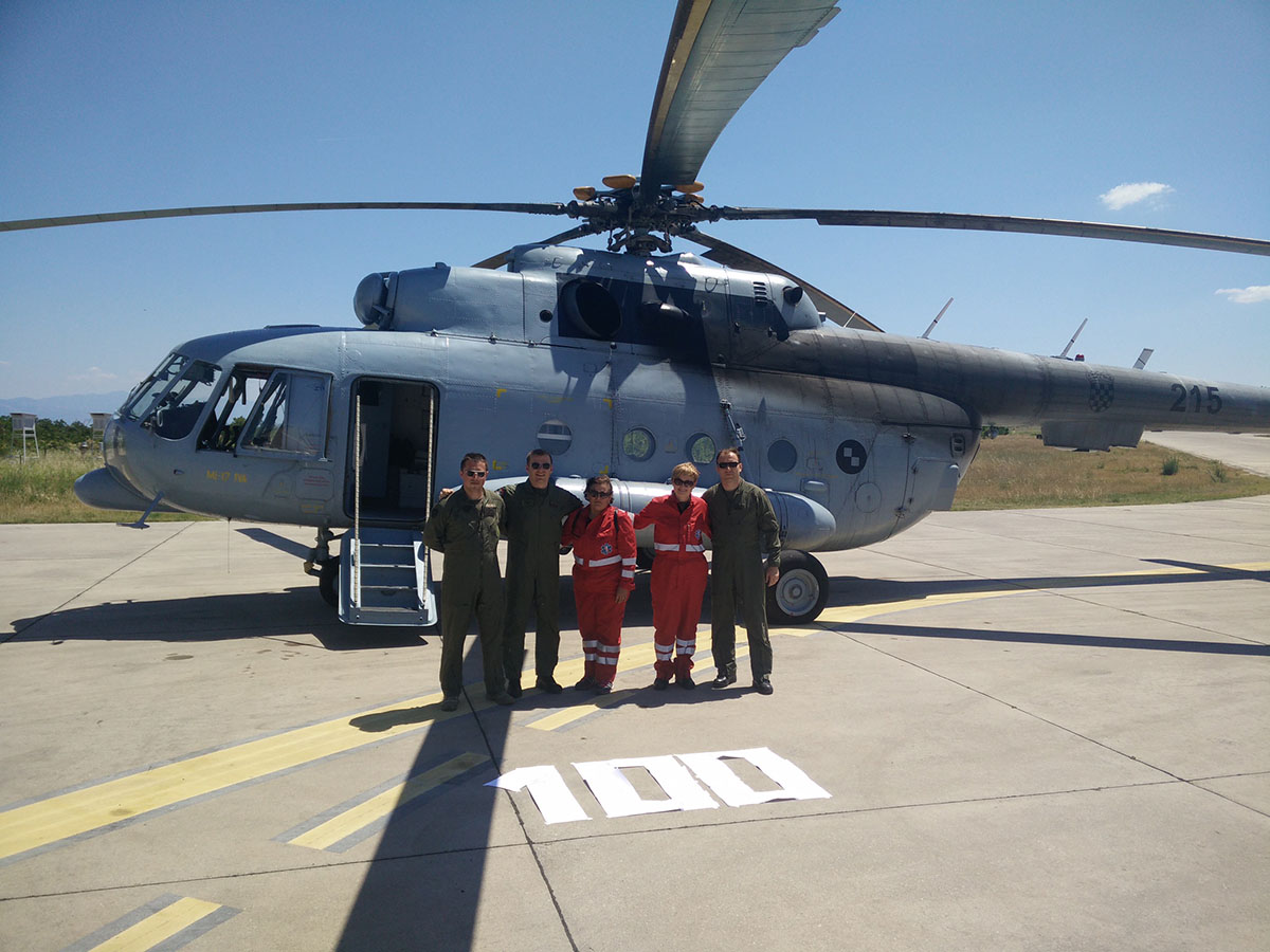 Posada helikoptera iz sastava Eskadrile višenamjenskih helikoptera 91. zrakoplovne baze HRZ i PZO-a stacionirana na otoku Krku, zajedno s medicinskim timom Oružanih snaga RH, uspješno je danas u ponedjeljak, 19. lipnja 2017. izvršila 100. zadaću hitnog zračnog medicinskog prijevoza ove godine.