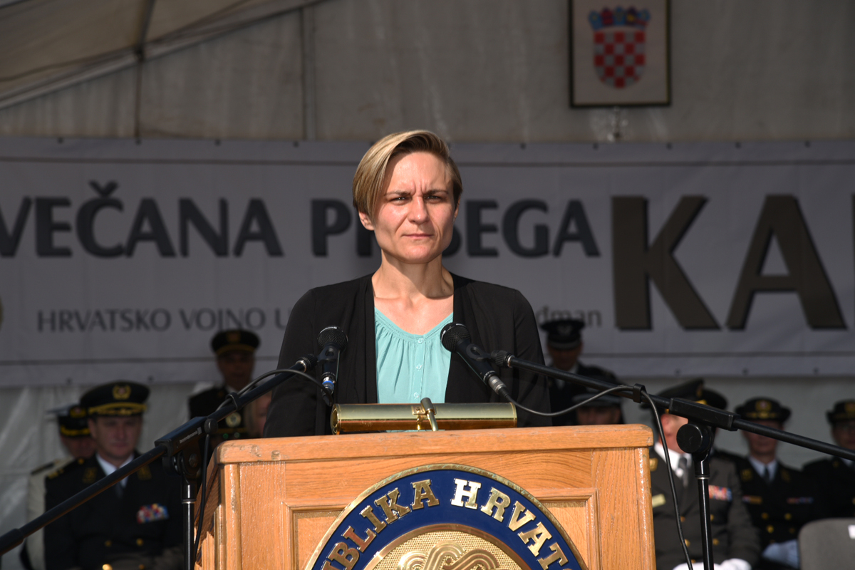 "Danas vidite kadete koji su prve vojne korake i obveze ispunili s najvećom ocjenom i oni već sada pokazuju veliki potencijal kao budući časnici Oružanih snaga. Imaju entuzijazam i težnju da savladaju velike napore koji su pred njima, da budu časnici koji imaju sve ono što je potrebno za vođenje vojnika, dočasnika, postrojbi i zapovjedništava", istaknuo je Zapovjednik HVU-a general pukovnik Slavko Barić,