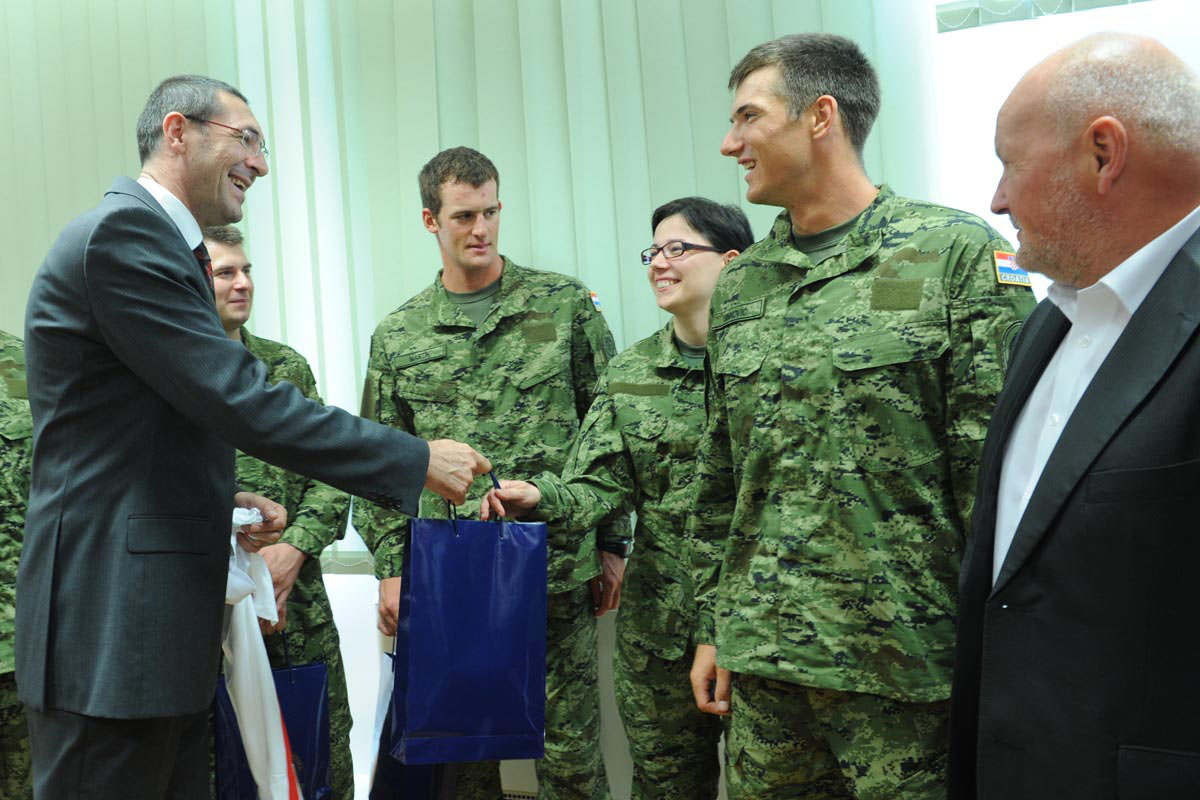 Ministar obrane Ante Kotromanović tom prigodom naglasio je da je ponosan na njih i dodao da oni na Olimpijskim igrama predstavljaju i ministarstvo te da je njihov uspjeh i uspjeh MORH-a. Naglasio je da će Ministarstvo obrane nastaviti uspješnu suradnju s HOO-om te u šali sportašima "zapovjedio da se vrate s jednom od medalja s OI". Podsjetio je da MORH pruža pomoć hrvatskim sportašima posebice tijekom priprema istaknuvši da se za te potrebe mogu koristiti vojna baza "Kovčanje" i luka Lora u Splitu.