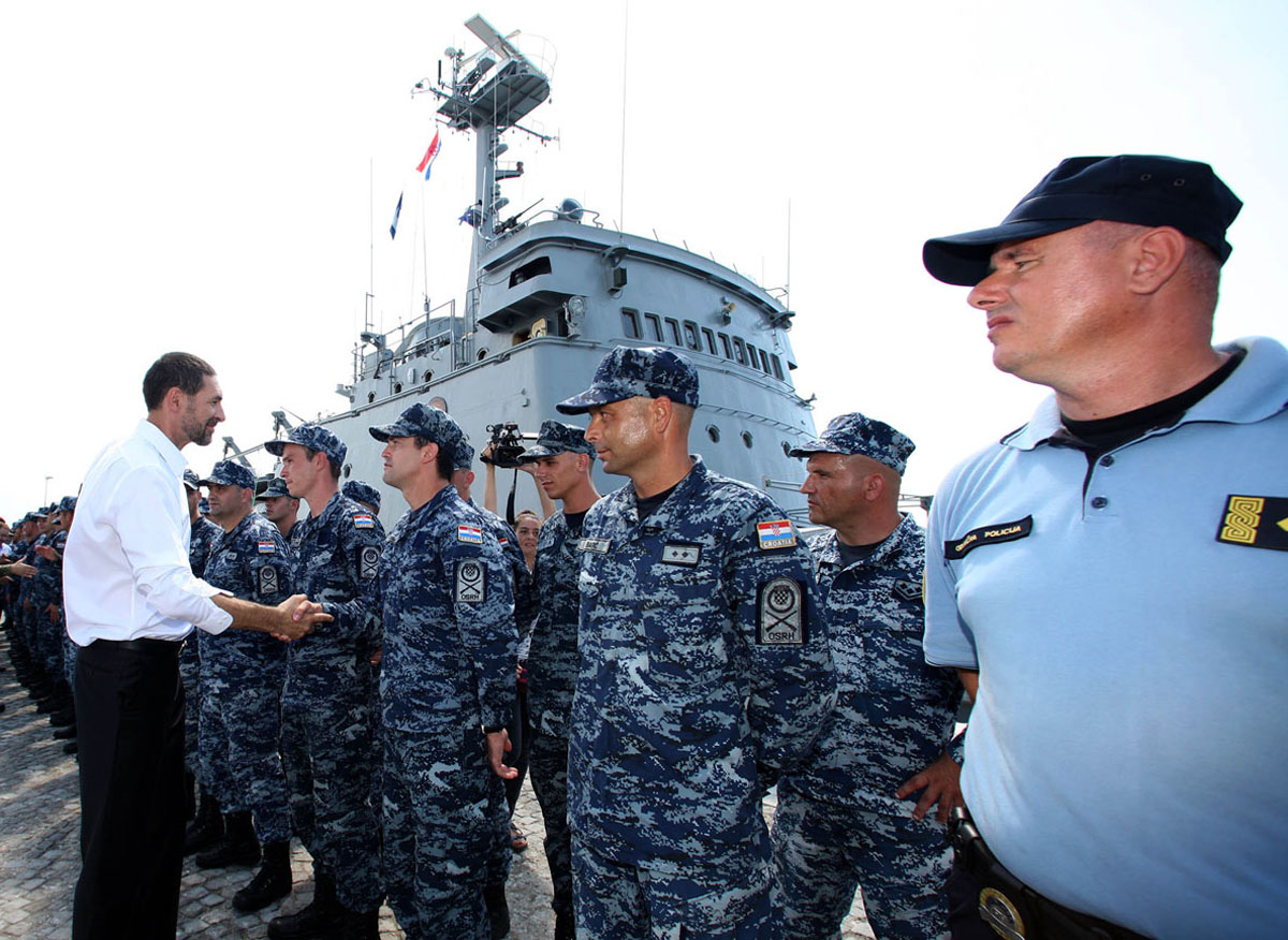 Ministar obrane RH Ante Kotromanović posadi broda koja će sudjelovati u EU operaciji "Triton" uputio je riječi podrške, naglasivši kako će pripadnici Oružanih naga RH na ovaj način steći dobro znanje i iskustvo koje mogu primijeniti u svom daljnjem radu. "Ulaskom u Schengen mi moramo stvoriti sposobnosti, kapacitete, stjecati daljnja znanja i iskustva, u cilju razvoja sposobnosti za samostalan nadzor naših granica, našeg mora te čuvanje naših nacionalnih interesa. Ova zadaća HRM-a sjajan je prilika za usavršavanje", rekao je ministar Kotromanović te dodao kako Ministarstvo obrane gradi sposobnosti Obalne straže i HRM-a gledajući u budućnost, od gradnje novih ophodnih brodova, nabavke vanobalnih ophodnih brodova i razvoja raketnih sposobnosti gdje će se uložiti ogroman napor idućih nekoliko godina.