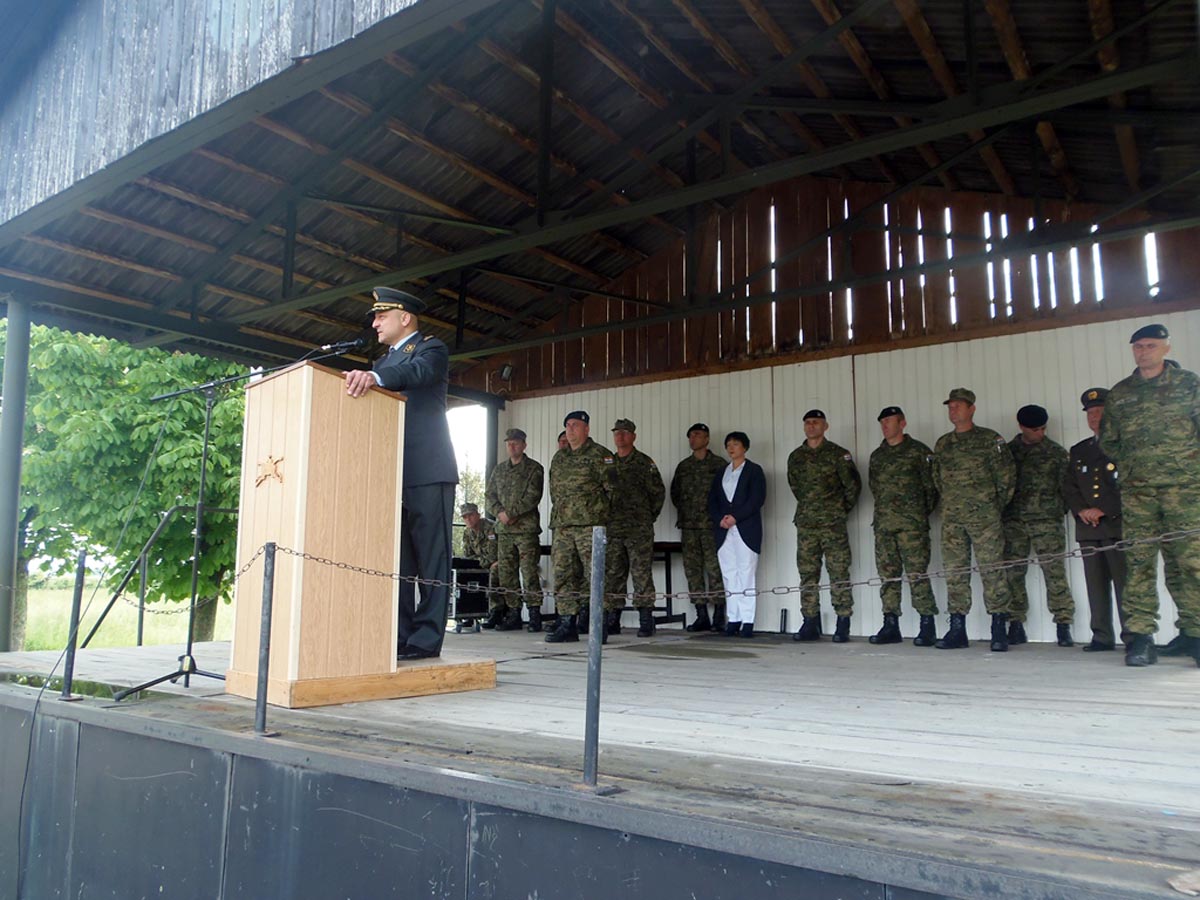 Svečani postroj tenkovske bojne "Kune" pozdravili su zapovjednik Gardijske oklopno-mehanizirane brigade HKoV-a (GOMBR) brigadni general Siniša Jurković i zapovjednik Tenkovske bojne "Kune" bojnik Valentin Skroza.